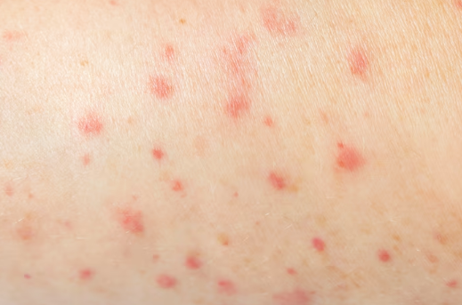 주요 증상 - 1~2mm 크기의 작은 팽진(부어오름)과 홍반